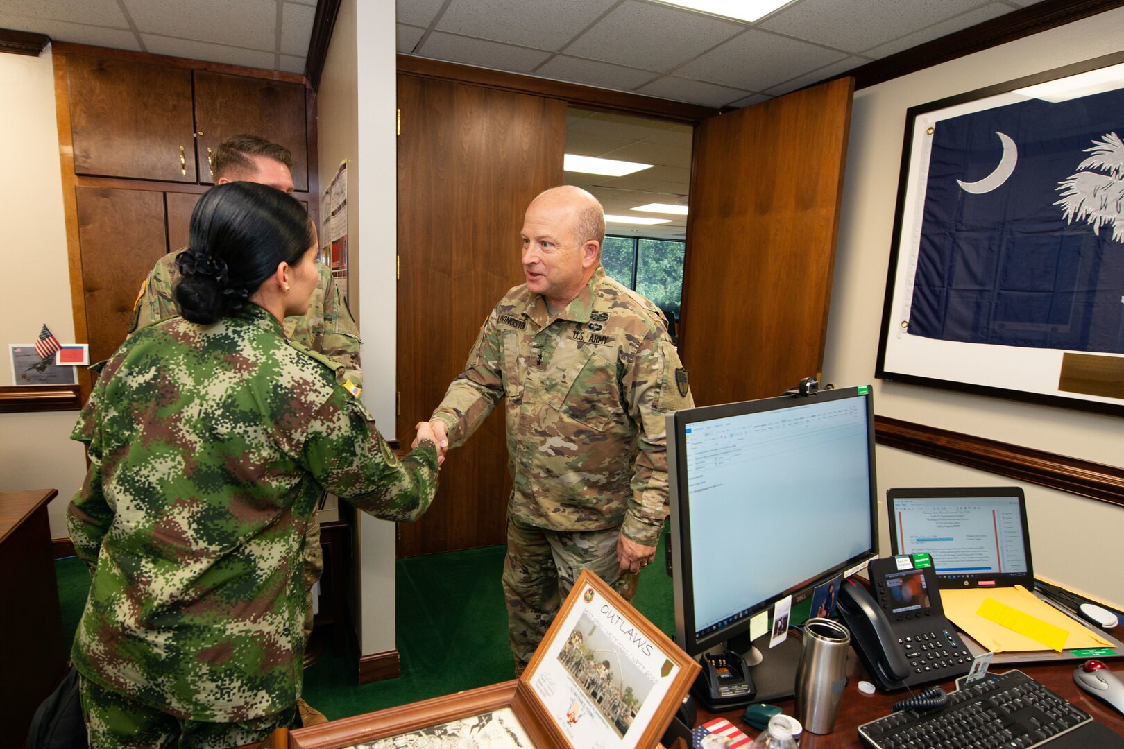 "It's an honor to host our Colombian partners here in South Carolina," said Livingston to Colonel Fransy Ayala, the Director of Planning and Legal Policies for the National Army of Colombia during the meeting. "It's truly been incredible to observe the military transformation and peace process as it has evolved. Every person in Colombia has been touched personally by the internal transformation and it's amazing how gracefully you've accepted former combatants into your country."